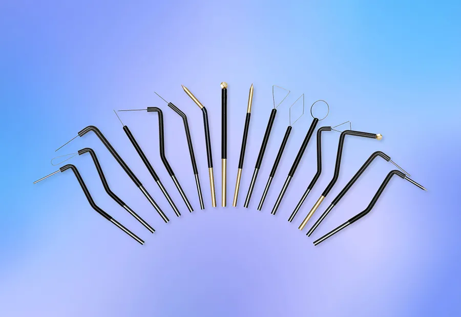 Electrodes are used in connection with high-frequency/radio frequency generators and cutting pens for cutting, ablation, and coagulation of tissues.